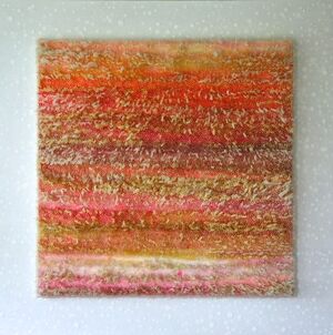 Die „Pünktchenbilder“ verleiten uns, abzutauchen in ein Universum, wie das lange Hineinsehen in einen Sternenhimmel. Hier wird auch phosphoreszierendes Tempera punktuell aufgetragen. Am Tag ist es ein anderes Bild als in der Dunkelheit, wenn es mit Schwarzlicht angeleuchtet wird.