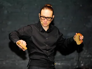 „In the Thicket of the Invisible Wires“ [Im Dickicht der unsichtbaren Drähte] nimmt zwei Phänomene von Unsichtbarkeit in den Fokus, die Stimmbänder, im Verborgenen liegend, doch für die vokale Klangproduktion zentral und die digitalen Verknüpfungen. Der Komponist und Performancekünstler Alex Nowitz erweitert seine Praxis mit gestengesteuerter Live-Elektronik, dem sog. ‚Strophonion’, und steuert mit zwei Handcontrollern – eine Praxis, die er ‚vokalen Klangtanz‘ nennt. Die Stimme vermischt sich mit ihrem Klon, dessen Klang mit Hilfe von Hand und Armen gesteuert wird. Die Erweiterung des emotionalen Informationsgehalts der Live-Stimme schafft faszinierende, abstrakte Klanglandschaften, welche vokale Grenzen für Momente aufzulösen scheinen und den Stimmperformer zum Klangtänzer macht.